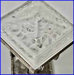 MULLER FRÈRES LUNÉVILLE LAMPE DE TABLE EN VERRE PRESSÉ FER FORGÉ ART DÉCO. Dimension verre : Hauteur 7 cm, largeur 18 cm. Hauteur totale 26,5 cm. Parfait état, à faire électrifier.