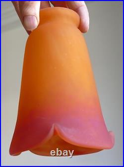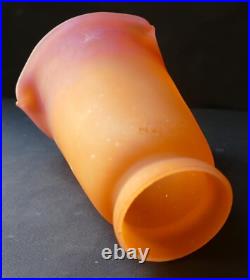 TRÈS BELLE TULIPE à col EN PÂTE DE VERRE MARMORÉEN. Couleur orange dégradé clair à foncé, ressemblant aux trompettes des fleurs de bignone. SIGNÉE DES FRÈRES MULLER LUNÉVILLE. DIMENSIONS: HAUTEUR 15,1 cm DIAMÈTRE col 5,5 cm.